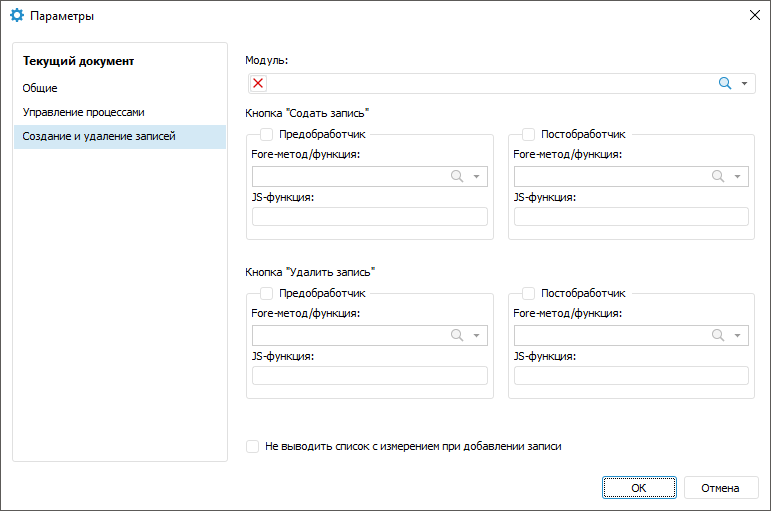 Для настройки расширения «Интерактивные формы ввода данных» используйте диалог «Параметры».