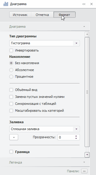 В верхней части панели отображаются наименование и пиктограмма активного объекта. На примере активный объект - диаграмма.