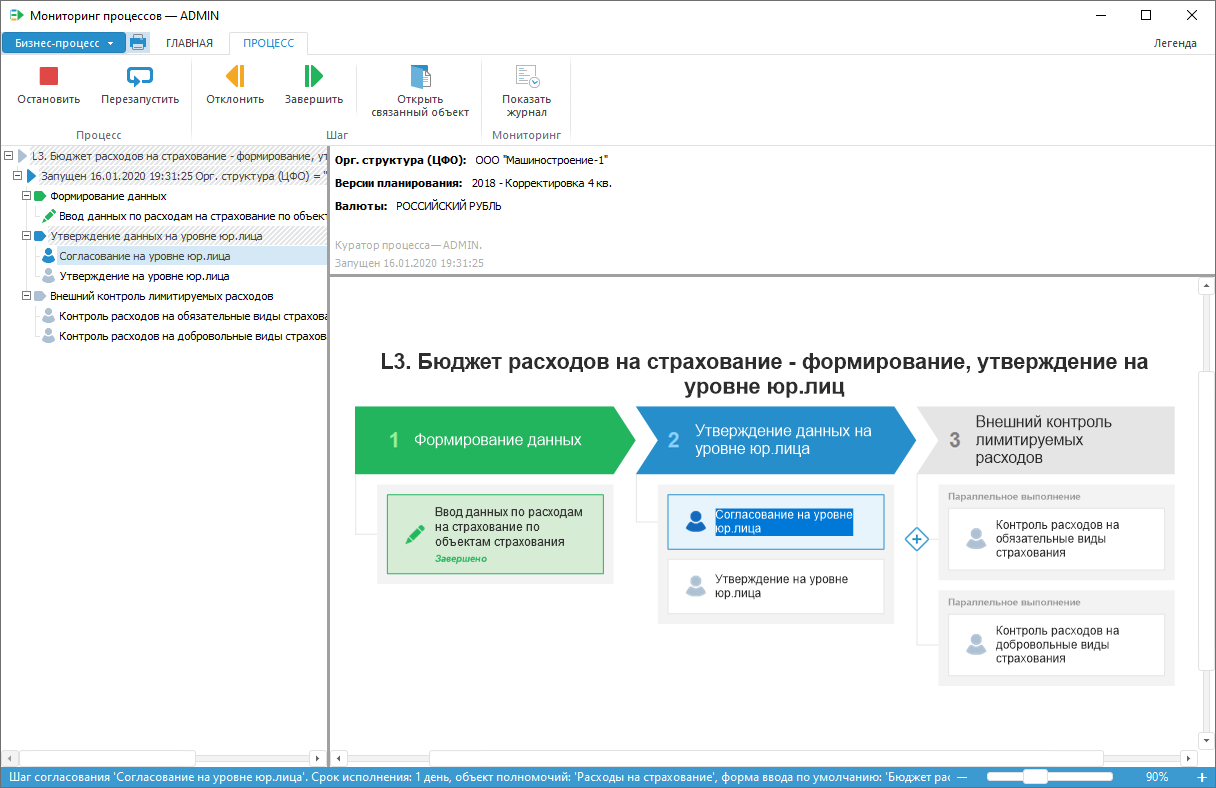 визуальный мониторинг хода выполнения процесса.