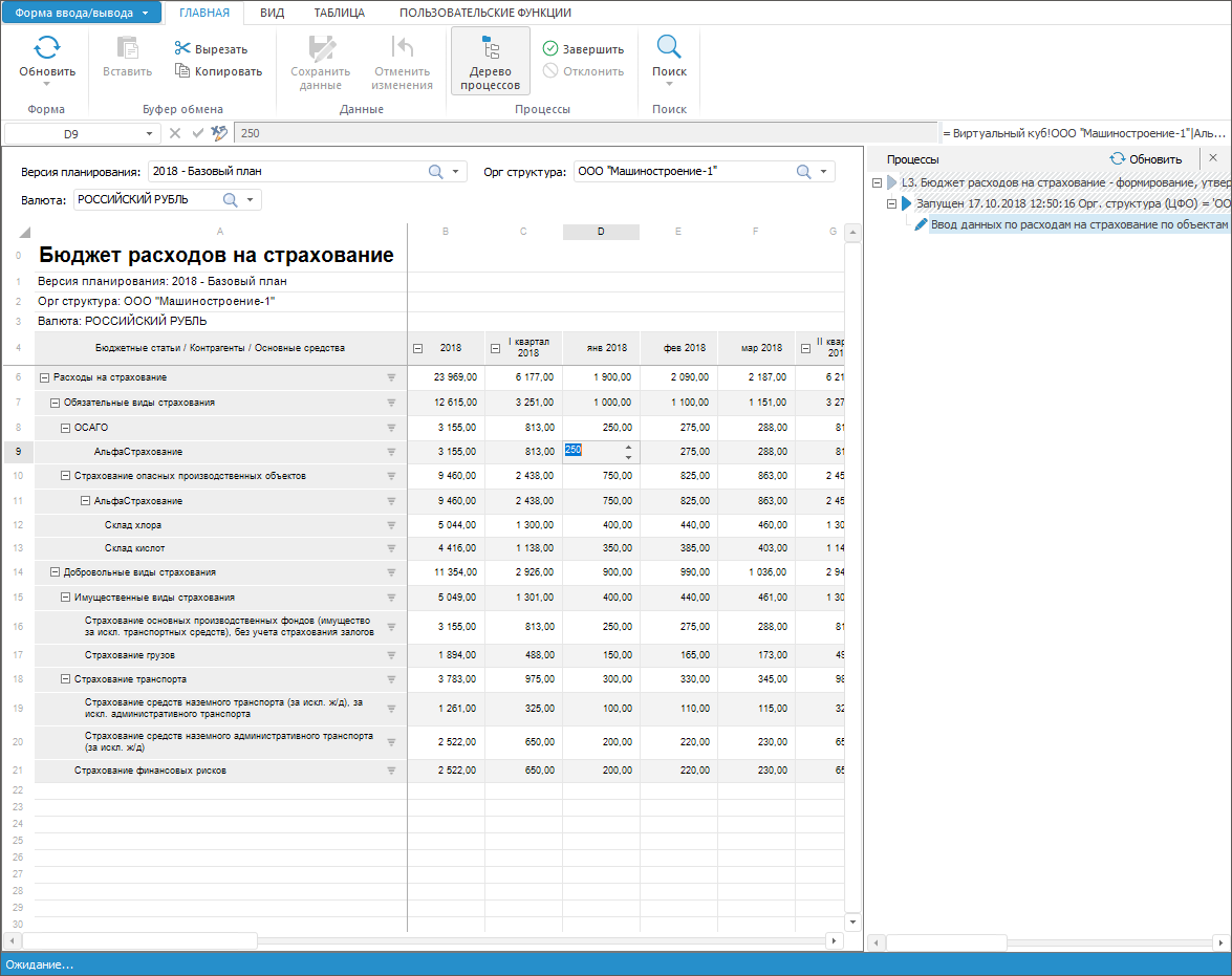 создание процесса и настройка его этапов и шагов: последовательность и срок выполнения, параметры, объекты для ввода, согласования и расчёта данных;