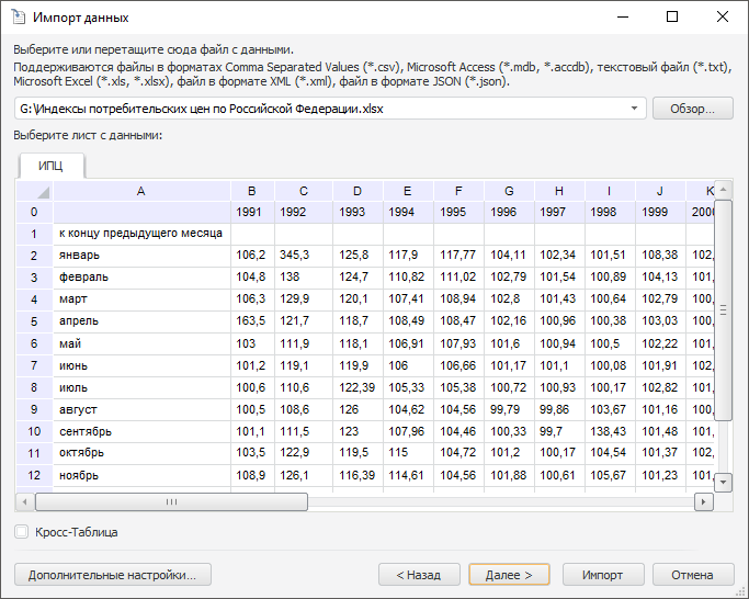 Инструмент «Импорт данных» предназначен для загрузки данных из произвольного источника в стандартный куб или базу данных временных рядов.