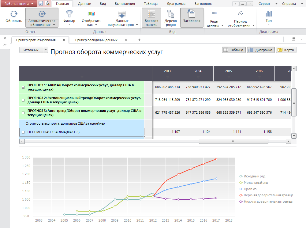 Инструмент «Анализ временных рядов» предназначен для исследования данных, изменяющихся во времени.