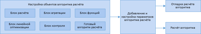 В процессе настройки алгоритма расчёта участвуют следующие объекты: