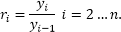 Пусть дан исходный ряд Y = {y1, y2, …, yn}, тогда экстраполирующий коэффициент для геометрической экстраполяции рассчитывается следующим образом: