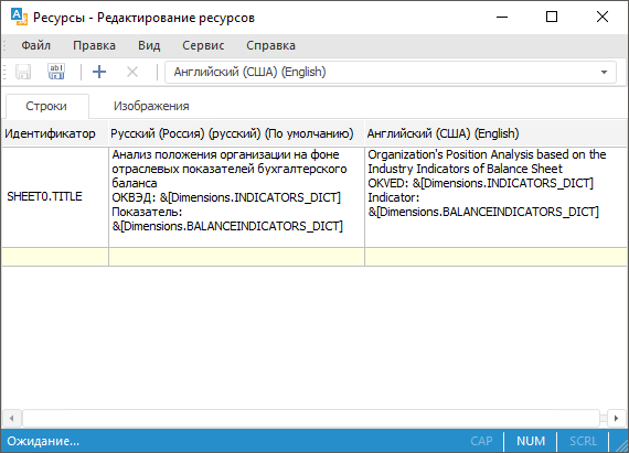 Создайте в навигаторе объект «Ресурсы» с идентификатором RESOURCE, в котором будет содержаться перевод заголовка, например: