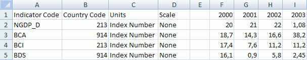 После выполнения примера будет произведен экспорт показателей из файла «C:\Fixed.xlsx». Экспортированы будут лишь те показатели, атрибут «COUNTRY» у которых равен «213».