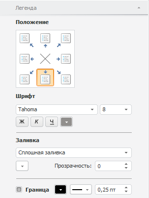 Вкладка «Легенда» расположена на боковой панели и предназначена для настройки параметров легенды диаграммы.