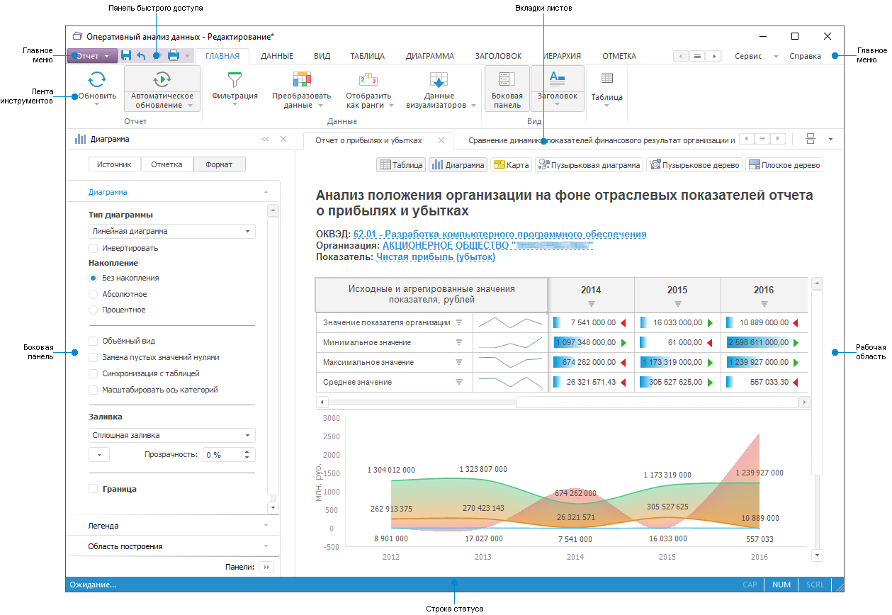 Основное окно инструмента «Аналитические запросы (OLAP)»: