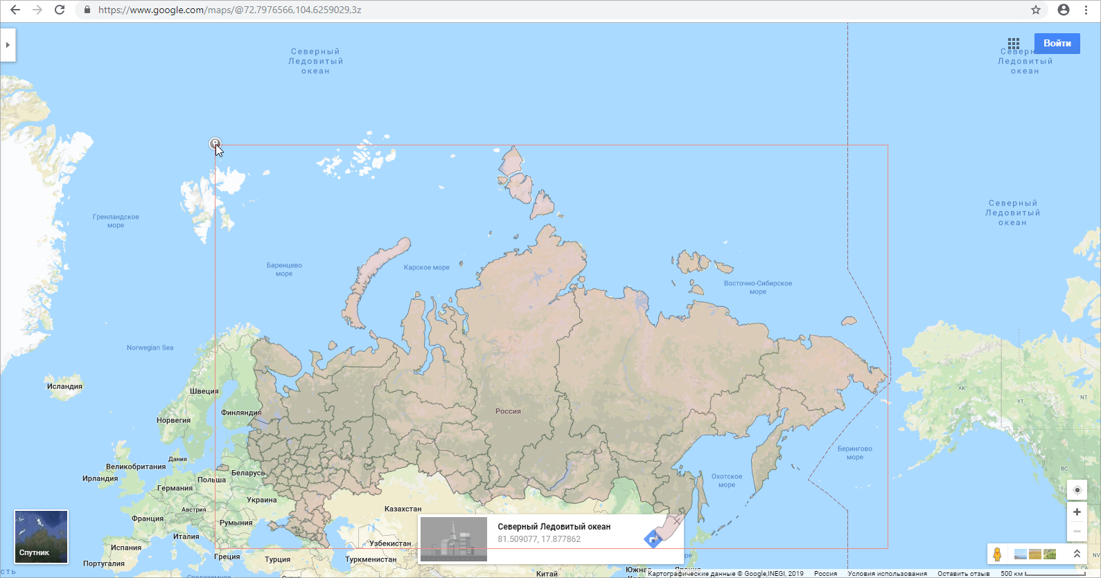 Примечание. Предварительно размер Google-карты уменьшите до минимального и отключите в меню параметр Globus.