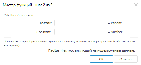 Если пользовательская функция параметрическая, то на следующем шаге мастера функций задайте значения параметров функции, например: