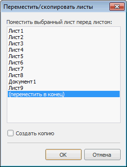 После выполнения команды откроется окно «Переместить/скопировать листы»: