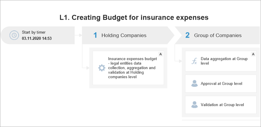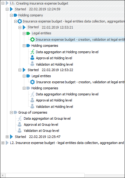 If authorization object and data entry form are used in the same process and their dimension selection matches, then select the checkbox to display steps of running process in processes tree of data entry form.