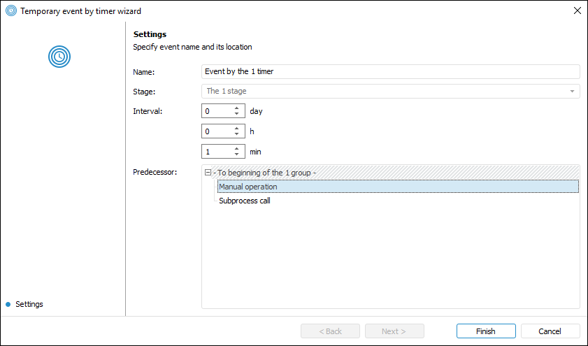 As a result, the Temporary Event by Timer Wizard dialog box opens: