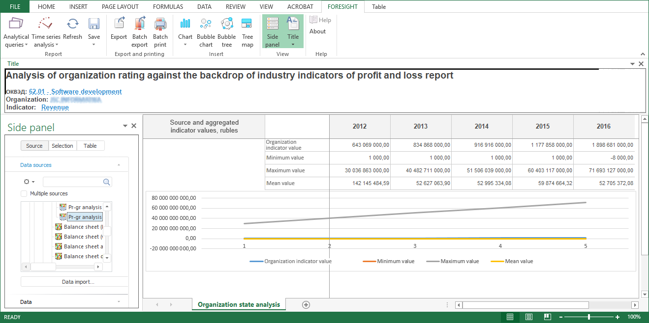 The Foresight Excel Add-In add-in enables the user to work with Foresight Analytics Platform using Microsoft Excel as a workspace. It is used to create table reports using the Analytical Queries (OLAP) and Time Series Analysis tools.