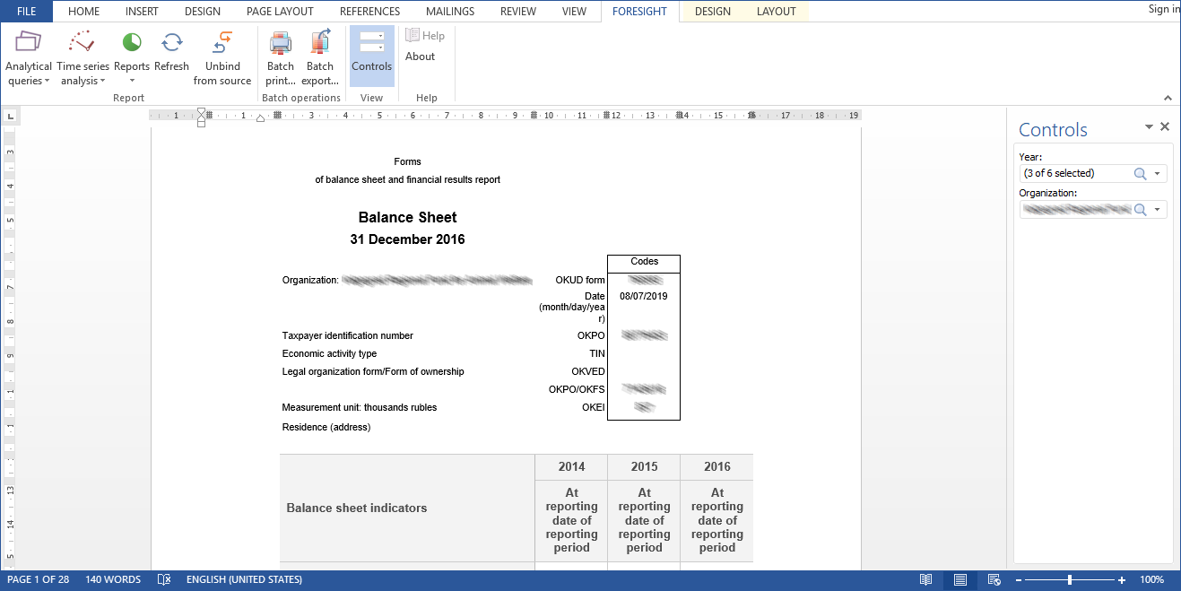 The Foresight Word Add-In add-in enables the user to work with Foresight Analytics Platform using Microsoft Word as a workspace. It is used to create text reports using the Analytical Queries (OLAP)Time Series AnalysisReports tools.