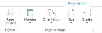 To execute quick setup page parameters of an active report sheet, open the Page Layout tab of the ribbon: