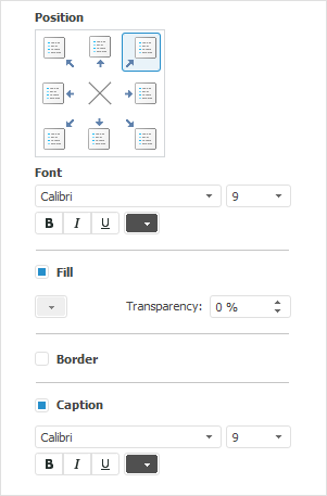 NOTE. In regular reports, a legend is added by using the Legend drop-down menu button of the Charts group on the Insert ribbon tab. Legend setup is available on the Legend Parameters side panel tab after selecting a legend in the working area.