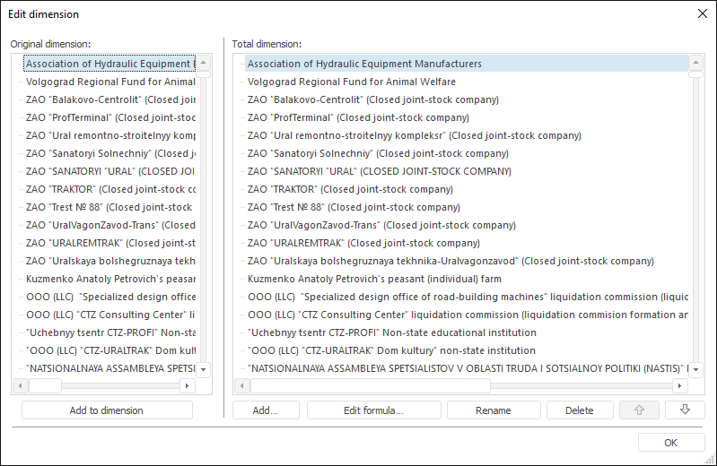 NOTE. After dimension editing it will not be rebuilt on changing data source parameters or managing dimensions.