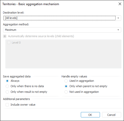 Determine whether the destination level value should be taken into account on aggregation calculation. By default, aggregation is calculated taking into account destination level. If the value is required to be excluded from aggregation, deselect the Include Owner Value checkbox.