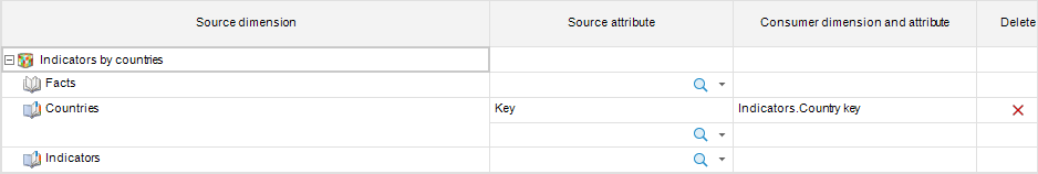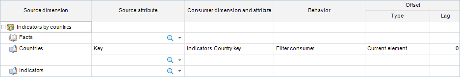 A link is set up between the Key attribute in the Countries dimension and the Country Key attribute in the Indicators dimension: