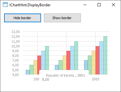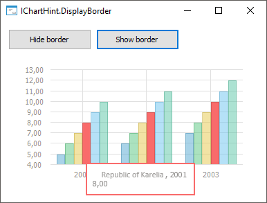 Clicking the Show Border button and pointing to the chart series displays the tooltip border: