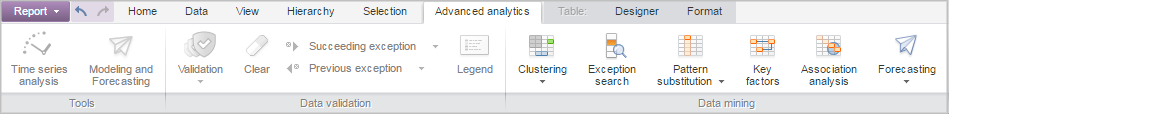 The AnalyticsCatView class implements the Advanced Analytics tab of the express report tool ribbon.