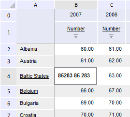 Executing the example requires that the HTML page contains the ExpressBox component named expressBox (see Example of Creating the ExpressBox Component) and have a loaded table in express report working area. The report must contain unsaved changes, and the data source must have dimensions with the following keys: 98, 103, 104, 105 and 106. One of these dimensions must be shown in columns, for example, the Calendar dimension with the 106 key (the figure below shows the 2005 element):
