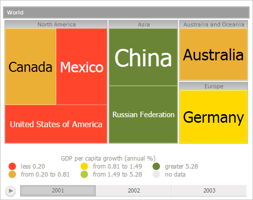 Executing the example requires that the HTML page contains the TreeMapBox component named treeMapBox (see Example of Creating the TreeMapBox Component). Display three intervals on the legend and place it at the left under the tree map plot area: