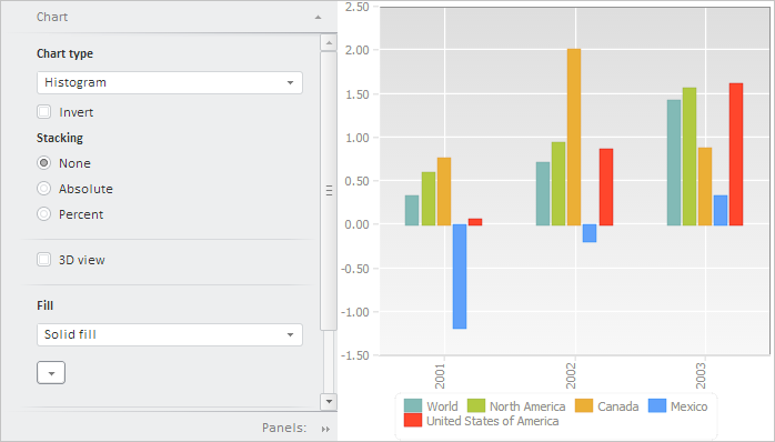 After executing the example the HTML page will contain the PP.Exp.Ui.EaxPropertyBar and ChartBox components: