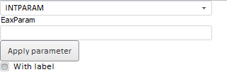 After executing the example the HTML page will contain a container for express report parameter (the EaxParameterBox component, a button for saving changed parameter changed data (the Button component), a control of the checkbox type for enabling and disabling label for the parameter (the CheckBox component) and a drop-down list for selecting express report parameter (the ComboBox component):