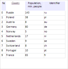 To execute the example, the HTML page must contain the DataGrid component named grid (see Example of Creating the DataGrid Component). Add a new style to table and set style index to the second column: