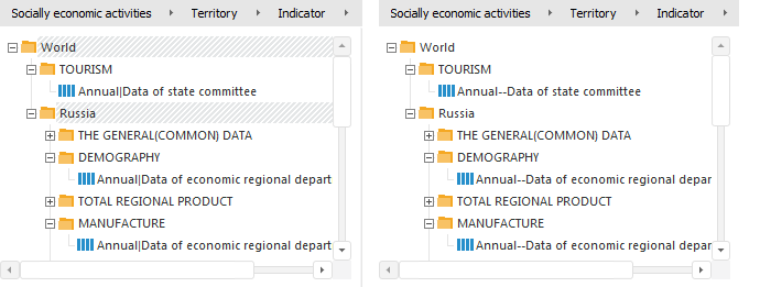 After executing the example a standard delimiter of attributes names | (image on the left) is substituted with the character -- (image on the right):
