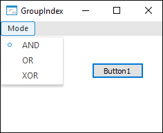 The GroupIndex property is used to create a group of menu elements working as radio button: selection of one element deselects other menu elements. To create a group, set the GroupIndex property to the same value for required elements and set the RadioItem and AutoCheck properties to True. For the selected group element, the Checked property will be set to True, for all the rest group elements - to False.