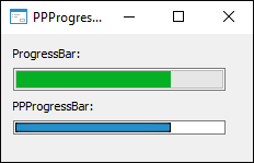 Unlike ProgressBar, style of the PPProgressBar component does not depend on style and settings of the operating system. Functional settings and features of the PPProgressBar and ProgressBar components are the same.