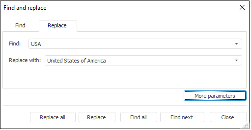 4. Click the Replace button for step-by-step replacing data in table cells or the Replace All button to replace all values.