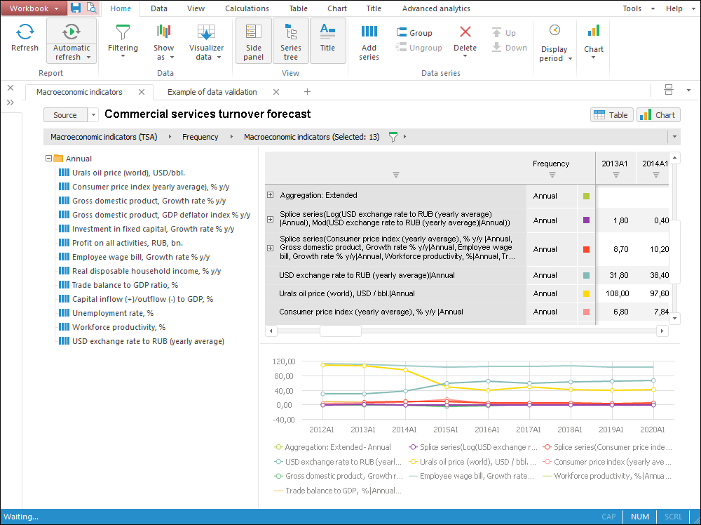 In Foresight Analytics Platform advanced analytics is executed by means of various tools and extensions that enable the user to build models and calculations and execute time series analysis.