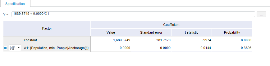NOTE. The tab is available if criterion function or one of the equation types is used: linear regression, non-linear regression, ARIMA, determinate equation, trend, custom code.
