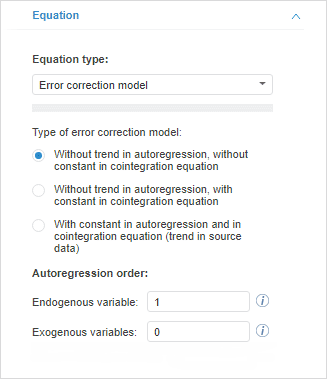TIP. For each exogenous variables you can set the group, determining cointegration relation type. Use the Factors tab on the results panel.