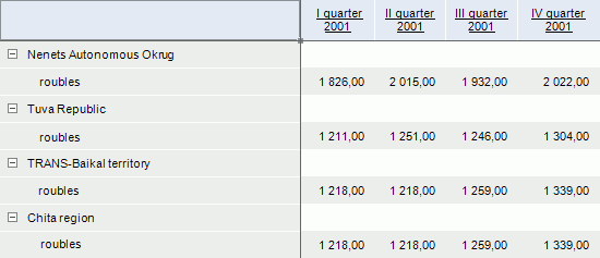 Consider the express report, which data source is a cube. The cube contains the Socio-Economic Indicators dimension. The Measurement Units attribute of this dimension is set as an alternative hierarchy.