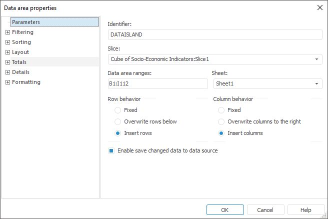 If the Enable Save Changed Data to Data Source checkbox is selected, changed data areas are saved to data source. If the checkbox is not selected, the changed data is not saved to the source.