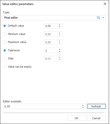 2. Select the Float Editor value in the Type drop-down list: