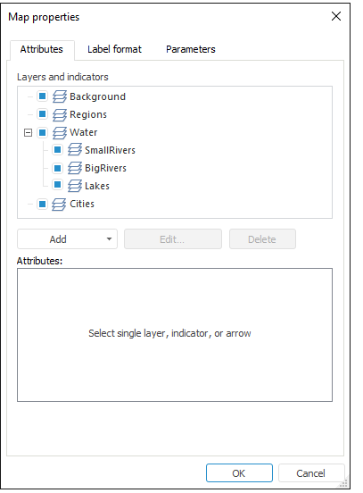 To create, set up and remove arrows, use the Attributes tab in the Map Properties dialog box.