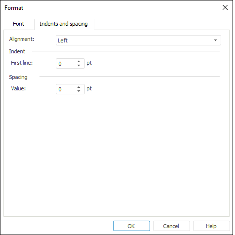 To set up text alignment in a text block, use the Indents and Spacing tab of the Format dialog box.