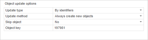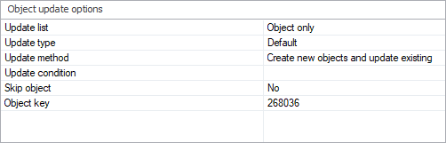 If several objects are selected in the object tree, the Object Update Options panel displays only common options.