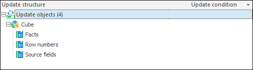 On adding a standard cube to update, dimensions are automatically added to the update.