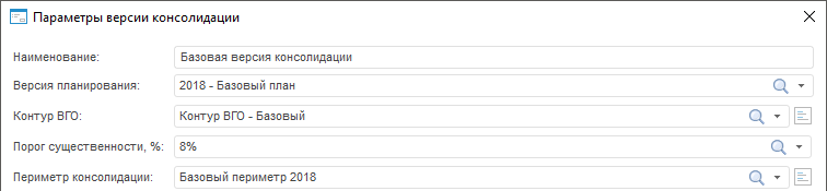 При формировании версий консолидации необходимо обеспечить сопоставимость элементов контура ВГО и периметра консолидации, указанных в соответствующих полях окна «Параметры версии консолидации».