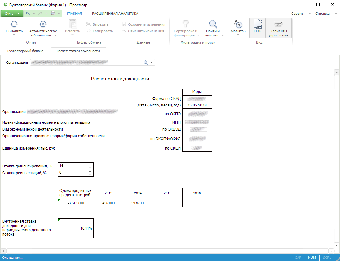Объект «Первичная и аналитическая отчетность» содержит примеры регламентных отчётов, подготовленных для печати на основе данных форм отчётности стандартизированного вида. Такие отчёты могут быть использованы для просмотра исходной информации, а также для печати форм отчётности.