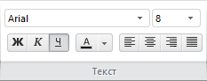 группы кнопок «Текст» на вкладке «Формат» на ленте инструментов: