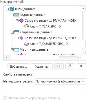 Примечание. Указанные настройки применяются для выделенного измерения куба в списке.
