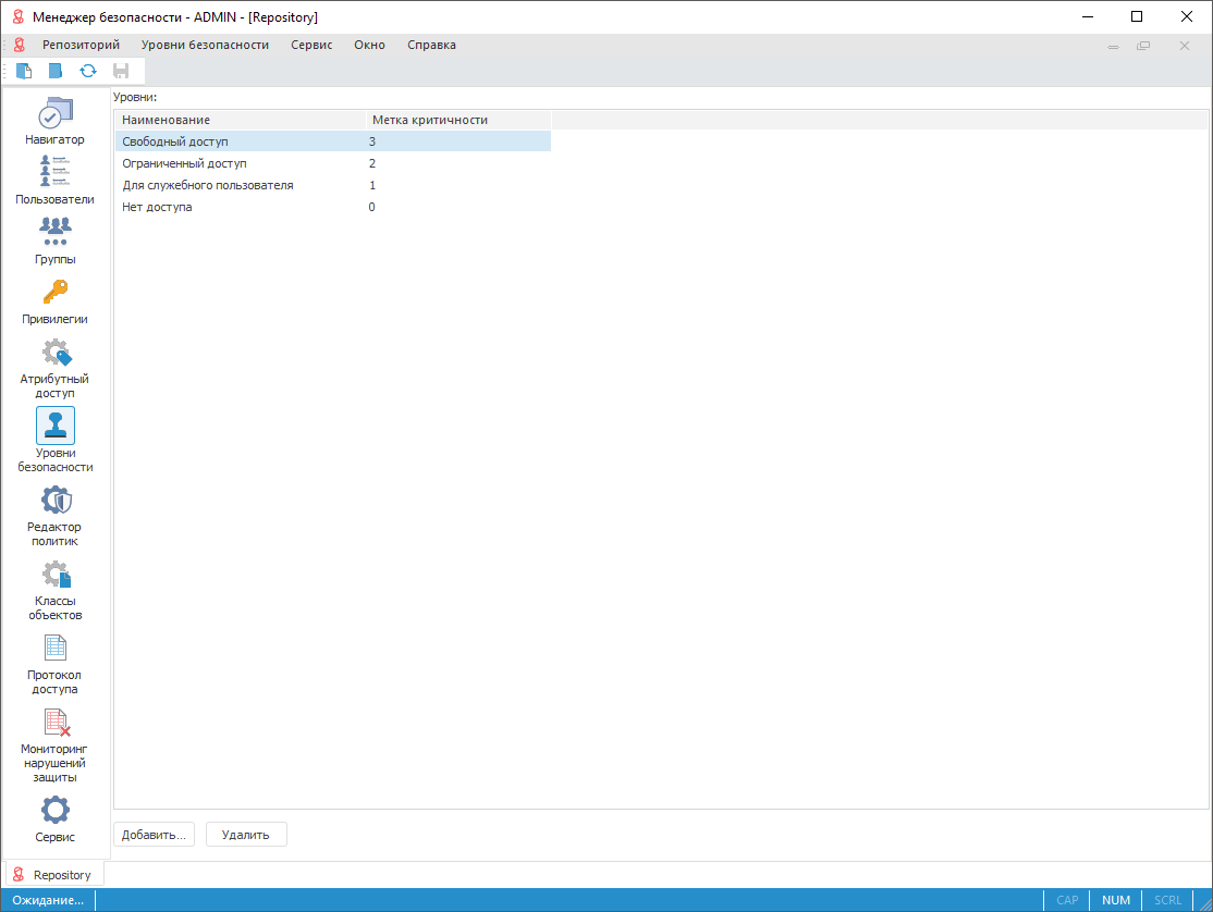 Раздел основан на принципе метода разграничения доступа по уровням, предназначен для формирования уровней безопасности, которые будут использоваться для разграничения прав.